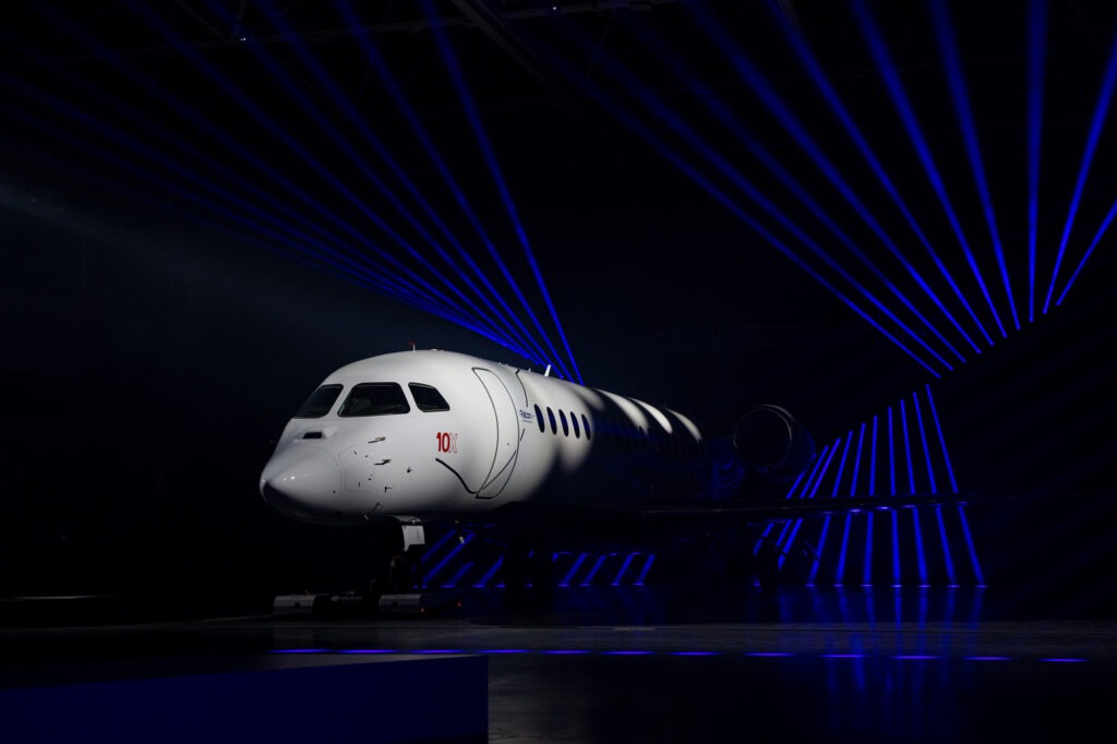 Seating up to eight passengers, the clean-sheet aircraft features high-speed aerodynamics delivering a maximum range of 7,500 nm (13,890 km) and a top speed of Mach 0.925. The Falcon 10X extends the Falcon family’s intercontinental reach, while also offering Dassault’s widest and tallest cabin to date, alongside its 8X, 6X, and 2000XLS siblings.